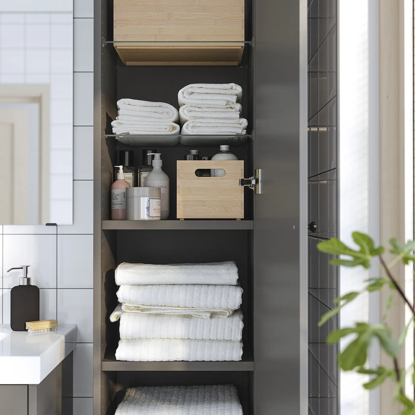 Тем, кто ценит атмосферу спокойствия и простоты, понравится чистый и лаконичный стиль серии для ванных комнат HAVBÄCK. Этот высокий шкаф эффективно использует вертикальное пространство, занимая минимум места на полу.