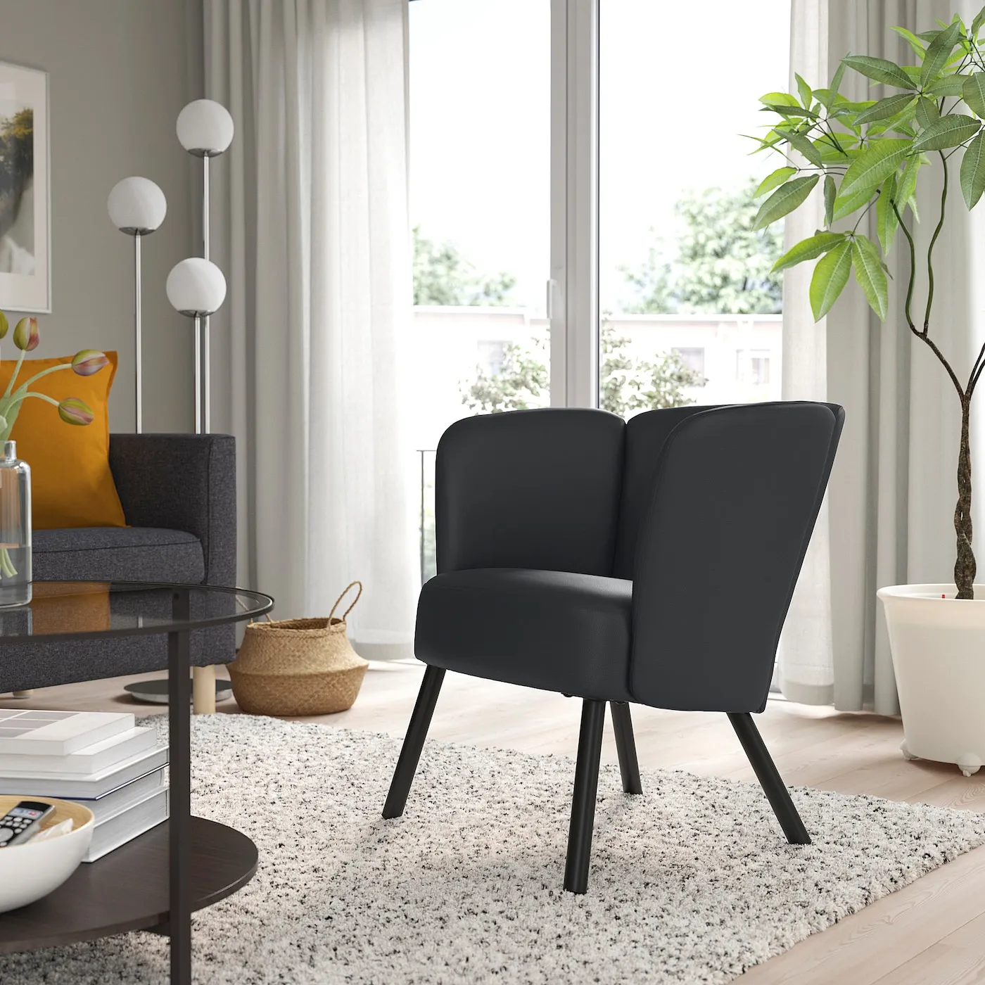 Смелый дизайн с очаровательными округлыми формами. Кресло HERRÅKRA в долговечной обшивке Skulsta отлично подойдет как для гостиной, так и для зоны ожидания в офисе.