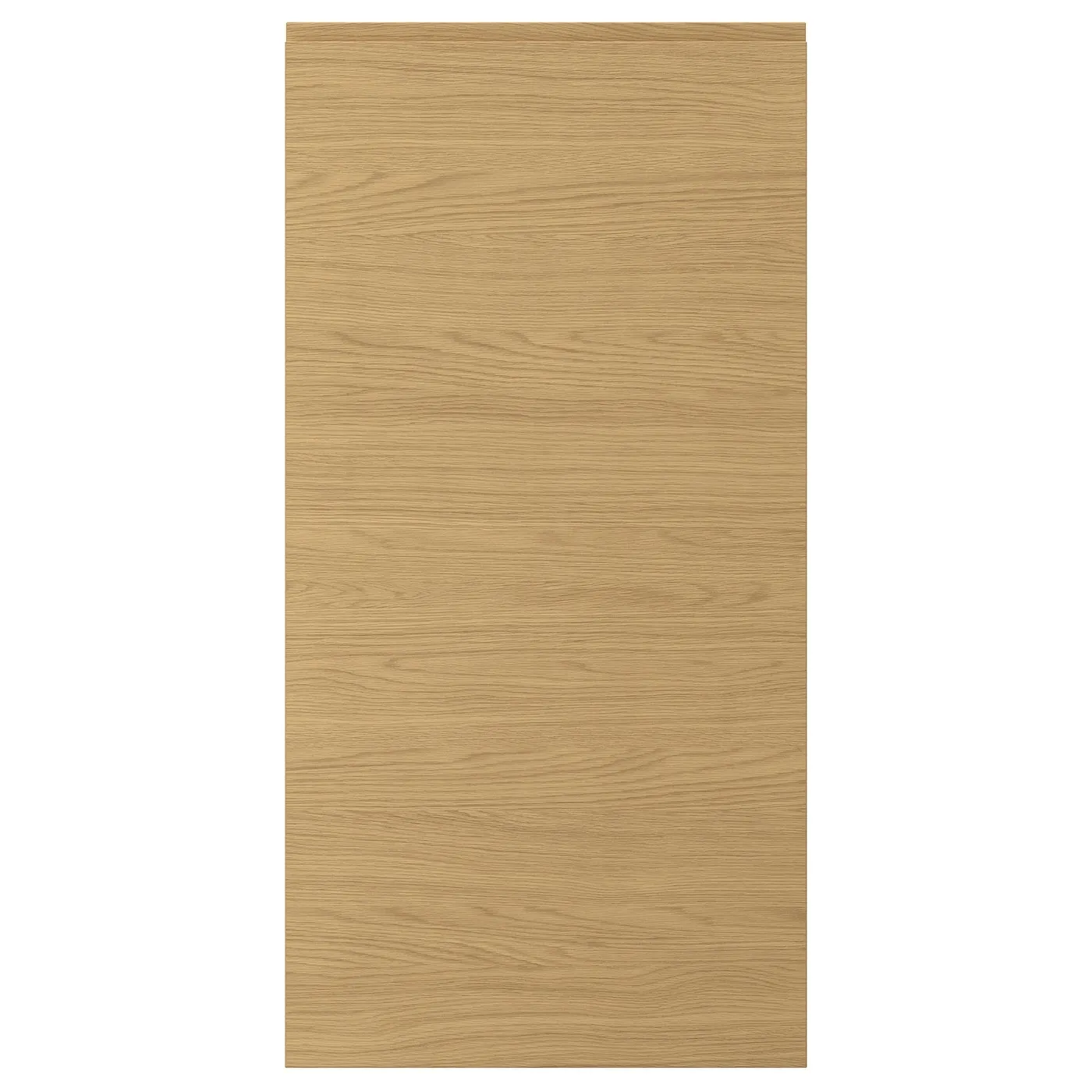 Фасады двери и ящиков VOXTORP с текстурой дуба и встроенными ручками, которые прекрасно сочетаются с общим дизайном, создают современный и элегантный вид, наполненный теплом и индивидуальностью.
