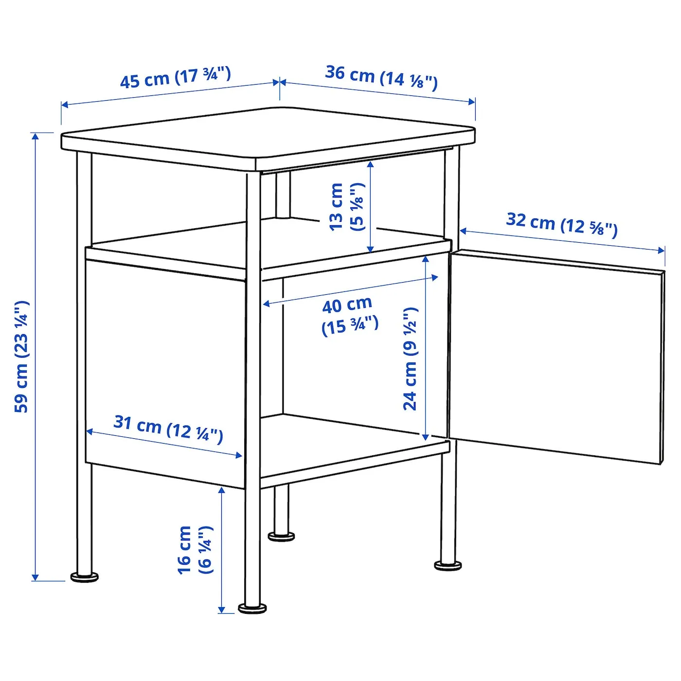 Серия GRÅFJÄLLET сочетает в себе индустриальные мотивы с чистыми и выразительными линиями, создавая актуальный и современный облик. В прикроватном столике есть открытое пространство на двух уровнях и просторное скрытое отделение за дверцей.