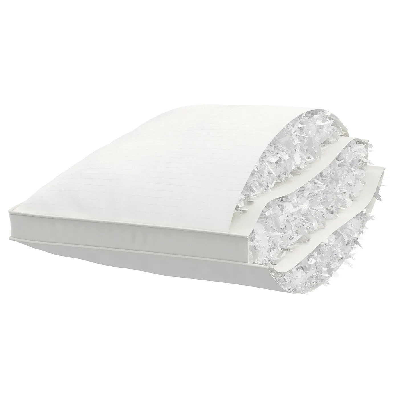 Плотное внутреннее ядро из пуха и перьев окружено мягким наполнителем из пуха и пера. Это обеспечивает хорошую поддержку и помогает снять напряжение с шеи и плеч, способствуя расслаблению.