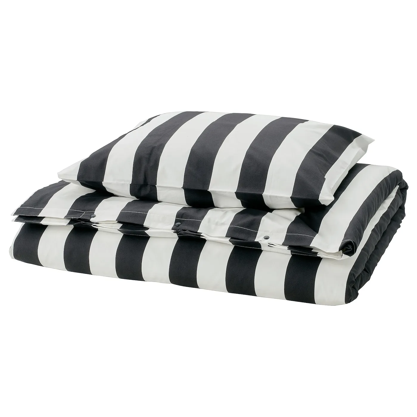 Классический набор пододеяльника в полоску с современной интерпретацией. Ткань перкалевая, что делает её прочной, свежей и мягкой для сна. Смесь хлопка и вискозы дышит и впитывает влагу.