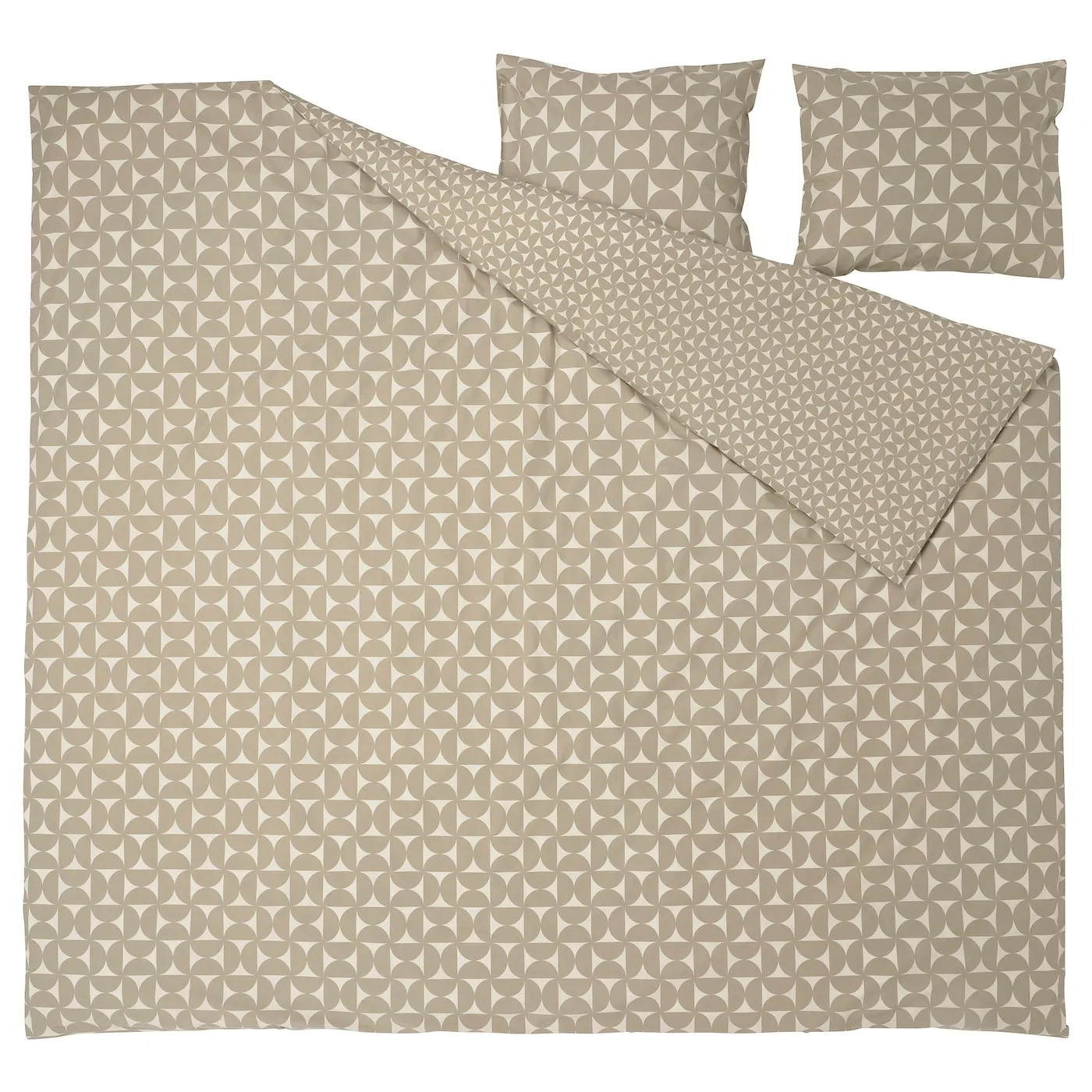 Комплект с пододеяльником и наволочками в графическом стиле в легко сочетающихся серо-бежевых и белых тонах. Ткань из плотного перкаля и изящной пряжи из хлопка/вискозы делает её прохладной, свежей и мягкой.