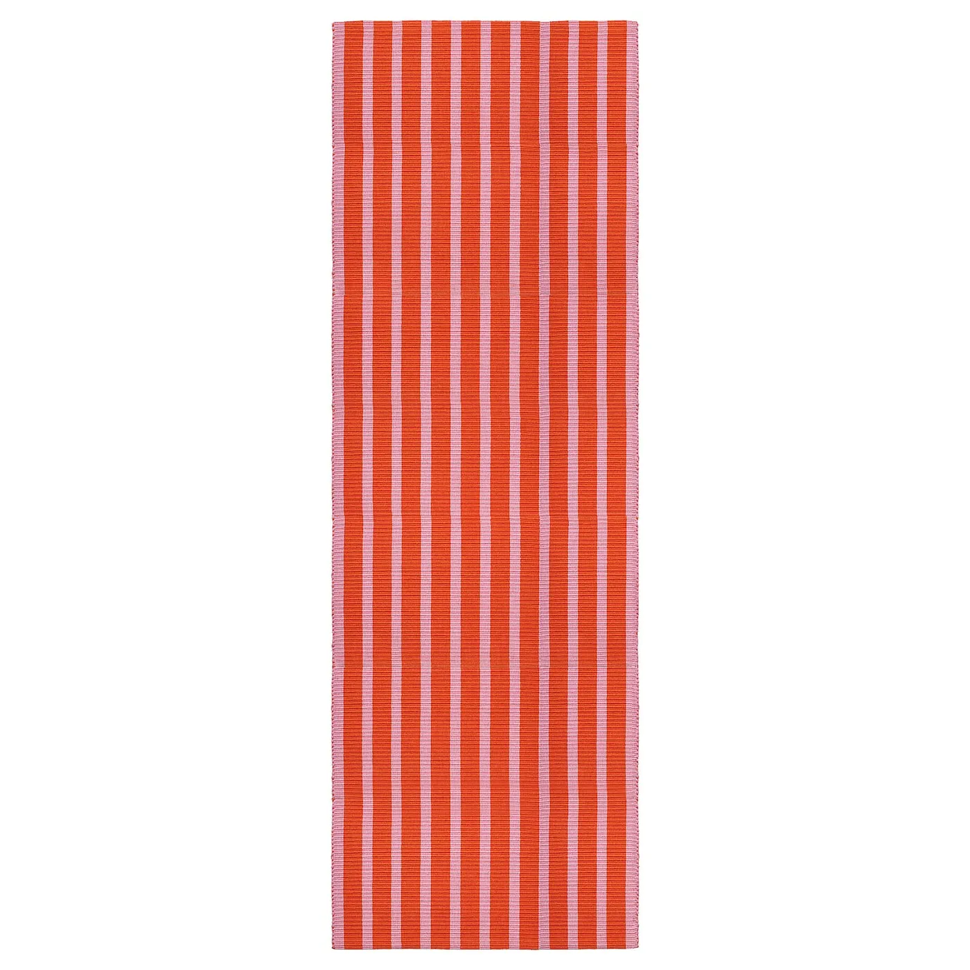 Каждое ваше посещение комнаты сопровождается теплотой и радостью. Игривая полосатая расцветка из розового и оранжевого делает этот хлопковый ковёр незаменимым акцентом. Великолепно сочетается с ковриком VÄGSKYLT.