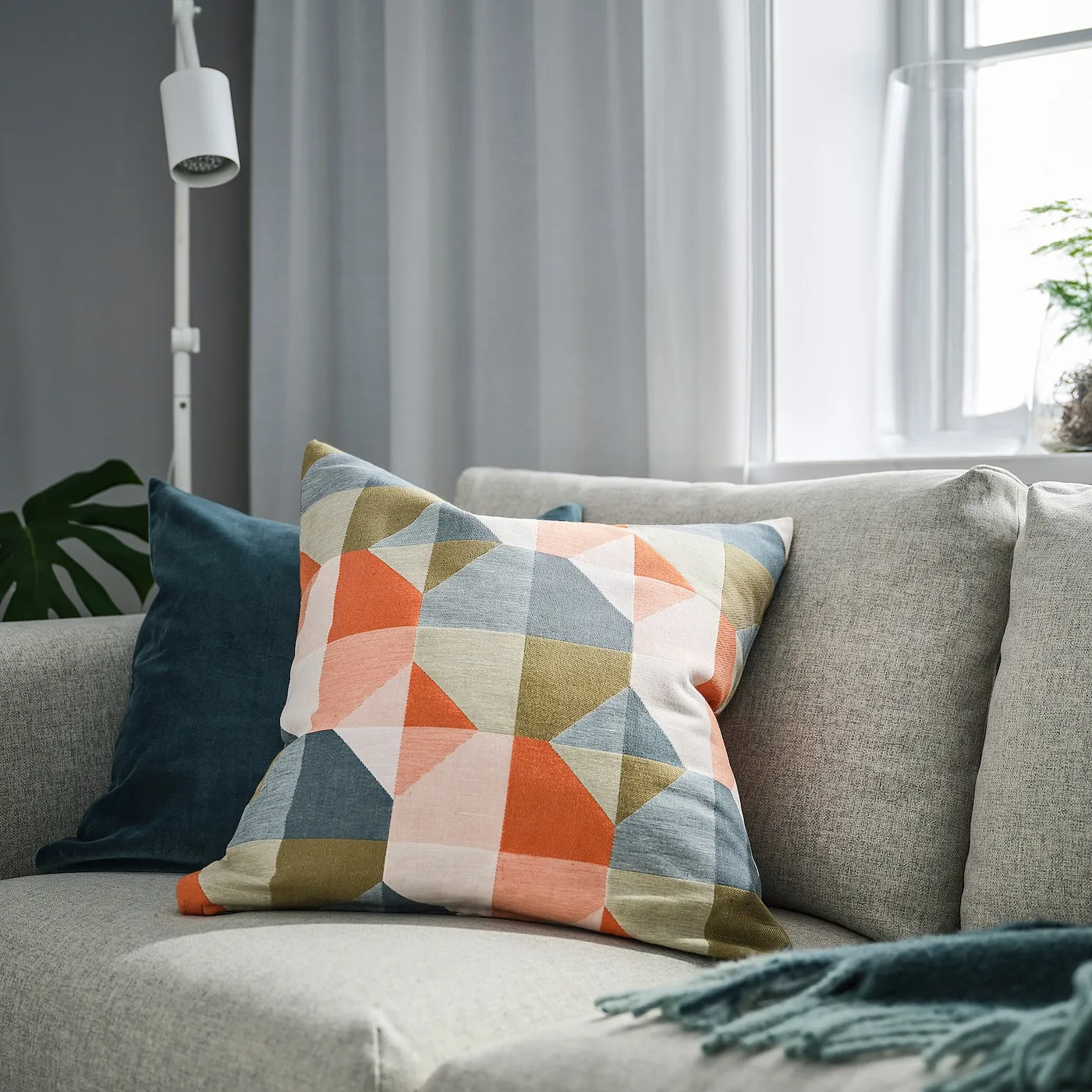 Этот чехол для подушки возвращает нас в 60-е годы с графическим узором и гармоничными цветами. Он жаккардовый, то есть узор вплетён в ткань, что придаёт ей приятную плотную текстуру.