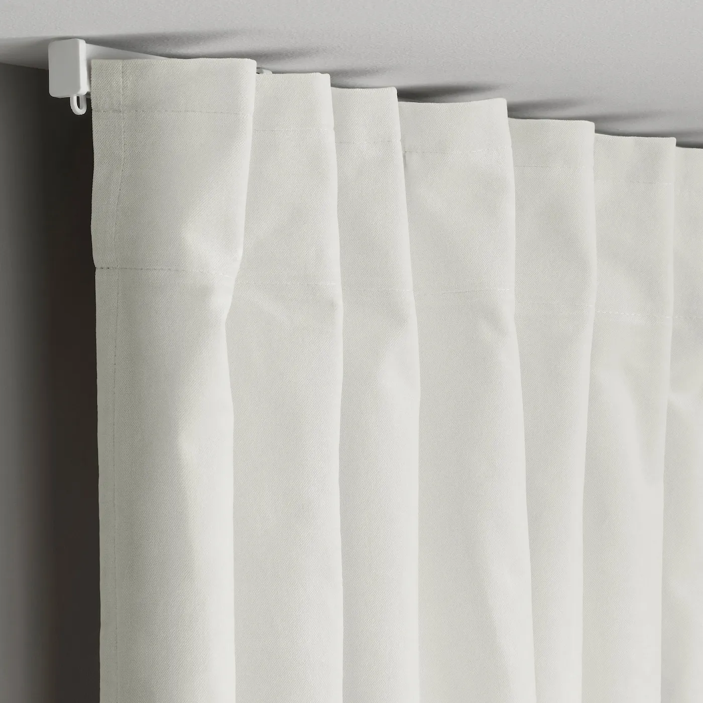 Обычно рекомендуется использовать 15 ползунков и крючков для каждого занавеса шириной 140 см. Вы можете изменить количество в зависимости от того, хотите ли вы узкие или более пышные складки.