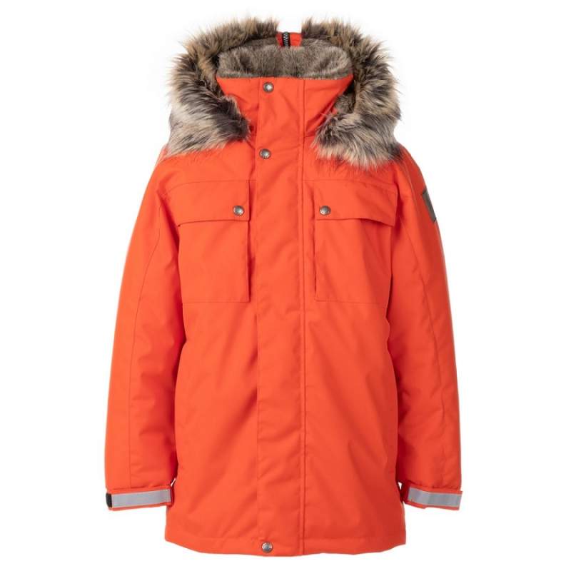 Главная особенность — капюшон с красивым искусственным мехом, который можно расстегнуть и превратить в высокий воротник. Куртка также оснащена регулируемыми манжетами, молнией с ветрозащитной планкой и светоотражающими элементами для безопасности.