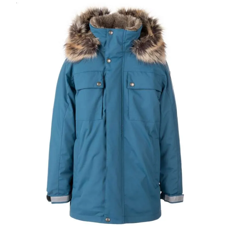 Главная особенность — капюшон с красивым искусственным мехом, который можно расстегнуть и превратить в высокий воротник. Куртка также оснащена регулируемыми манжетами, молнией с ветрозащитной планкой и светоотражающими элементами для безопасности.