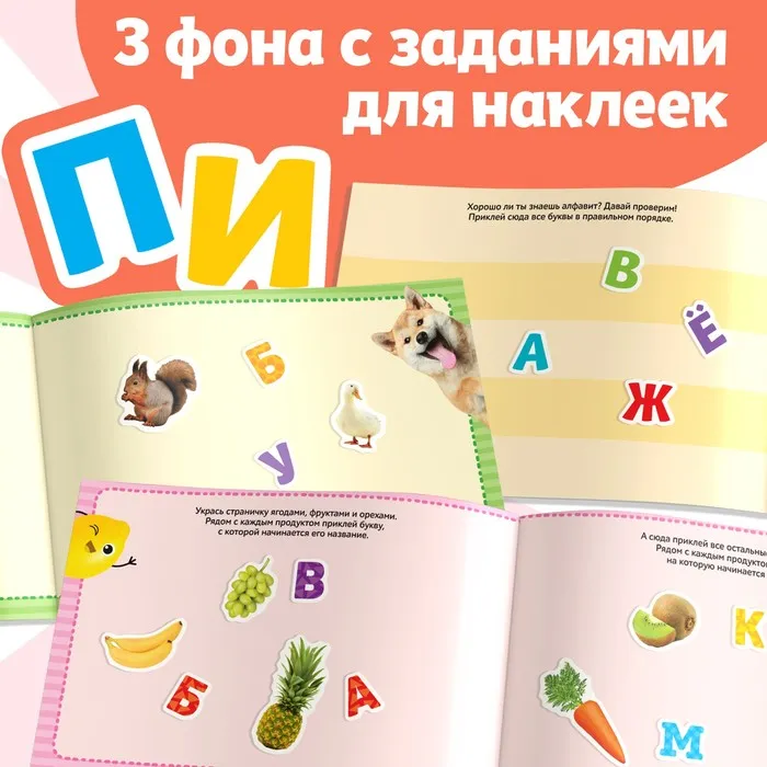 С альбомом интерактивных наклеек «Алфавит» познавать окружающий мир ребёнку будет легко и интересно.