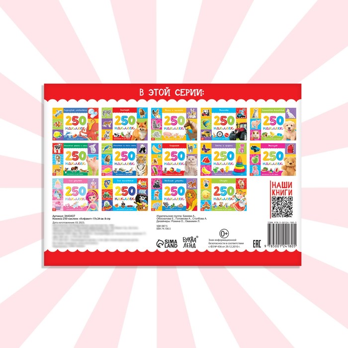 В альбоме представлено 250 наклеек с красочными изображениями животных и букв русского алфавита. Яркие картинки положительно влияют на визуальное восприятие малыша, память и воображение.
