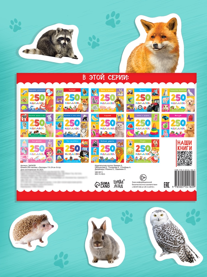 250 наклеек «Зоопарк», 8 стр. — Характеристики