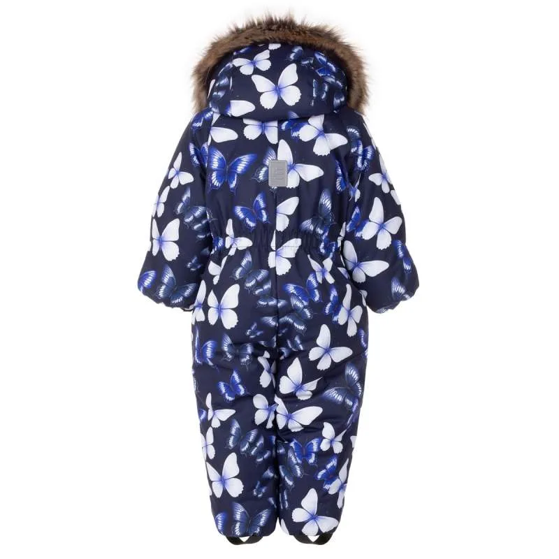 Зимний комбинезон Lenne Berry 25307–2277 с принтом бабочек и меховой опушкой