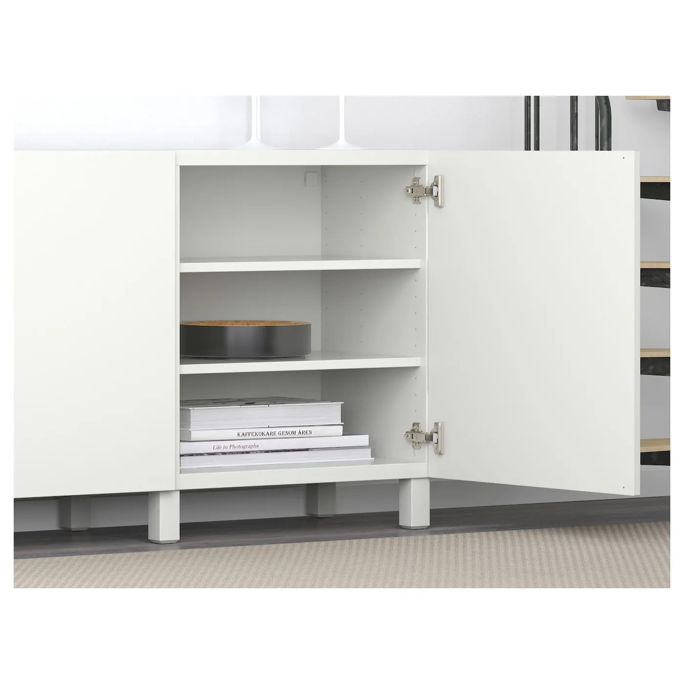 Эта комбинация состоит из нескольких отдельных модулей. Используйте верхнюю панель BESTÅ, продается отдельно, чтобы скрыть стыки между рамками и создать единый вид.