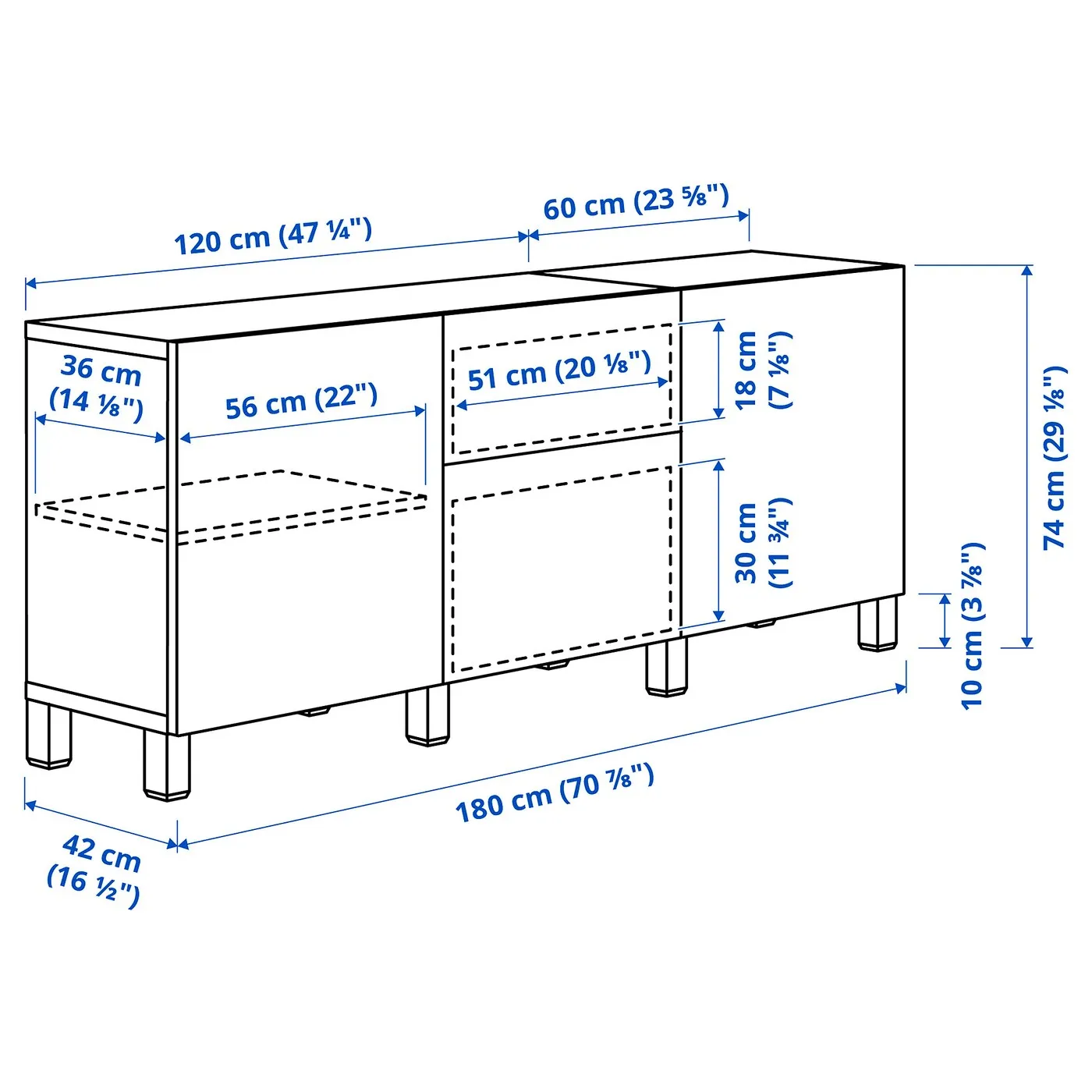 Ножки приподнимают вашу комбинацию BESTÅ над полом, создавая легкий и воздушный вид, а также облегчают уборку пола под мебелью.