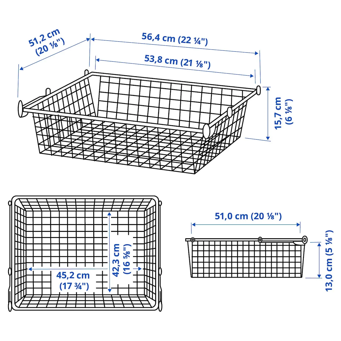 Органайзеры HJÄLPA включают в себя направляющие, корзины, крючки и полки, которые эффективно используют пространство и поддерживают порядок.