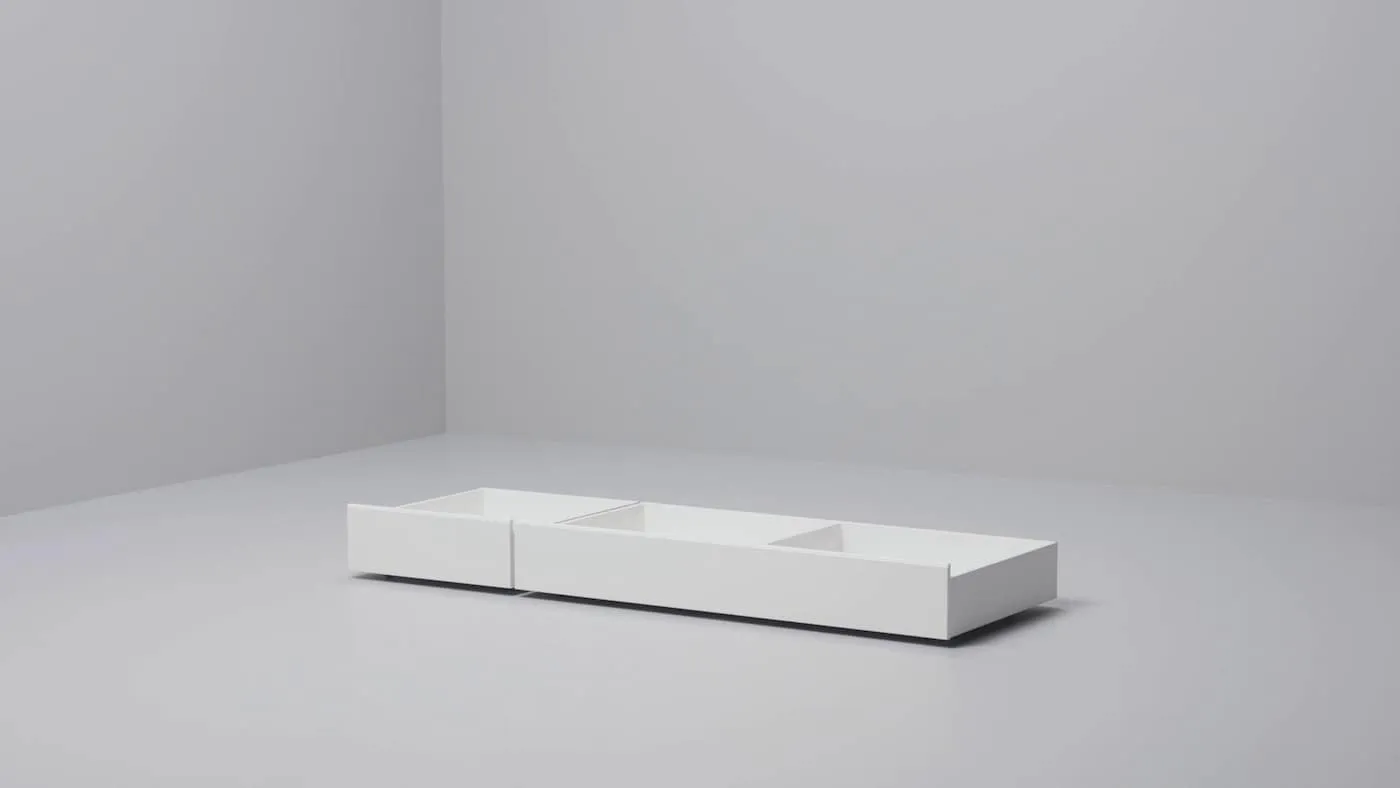 Ящики для хранения SONGESAND идеально сочетаются с кроватной рамой SONGESAND. Они аккуратно помещаются под кроватью, не выступая за края.