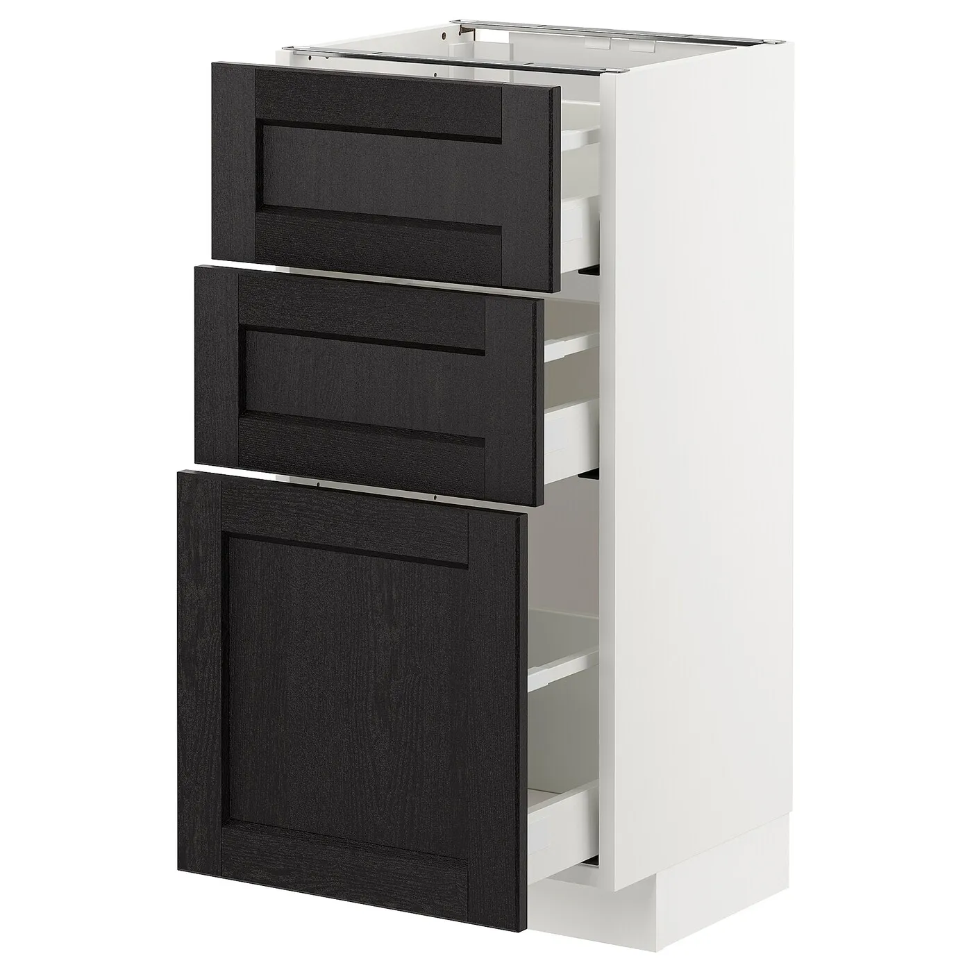 Кухонная система METOD открывает безграничные возможности для создания вашей идеальной кухни. Черные мореные фасады LERHYTTAN с фаской придают помещению теплый и традиционный вид.