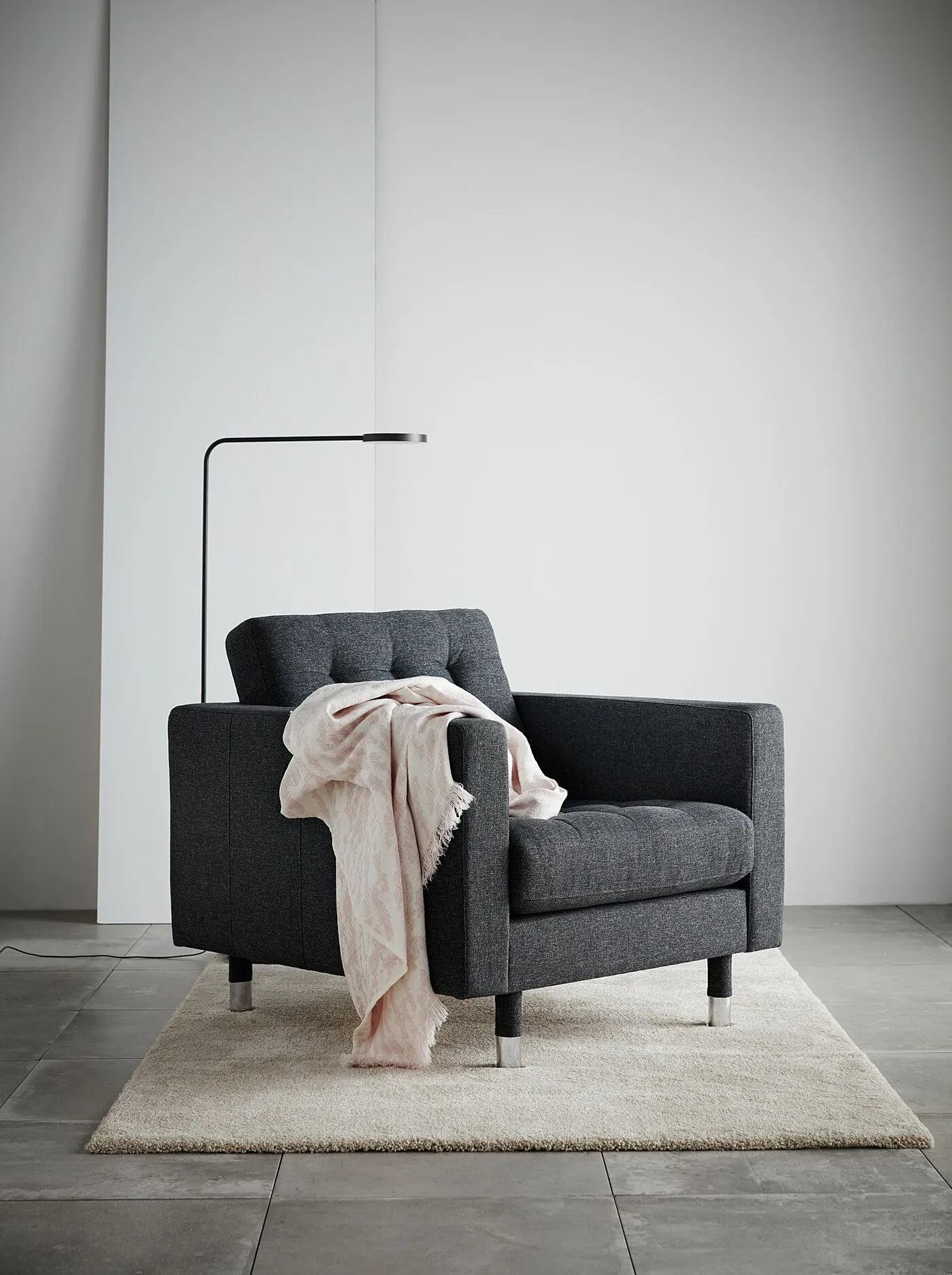 Уютное и гостеприимное, аккуратное и стильное. Поддерживающие подушки, мягкая на ощупь обивка и четкие линии придают этому креслу идеальный баланс между комфортом, функциональностью и внешним видом.