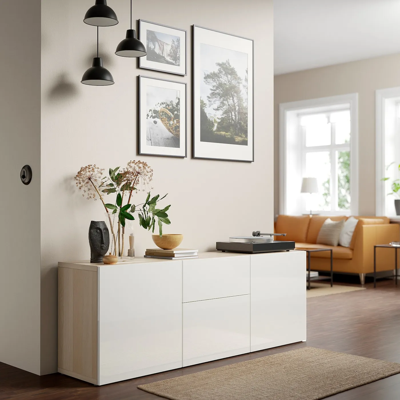 Эта комбинация состоит из нескольких отдельных блоков. Используйте верхнюю панель BESTÅ, продается отдельно, чтобы скрыть стыки и создать единый вид.