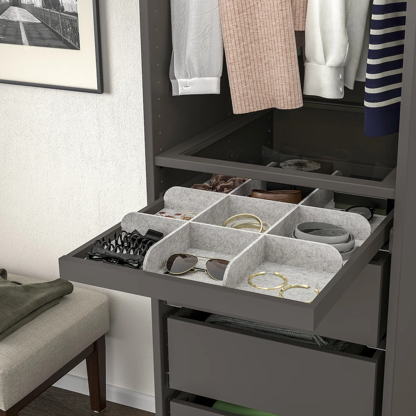 Разделитель помогает держать мелкие вещи, например, шарфы, ремни и галстуки, в порядке и легкодоступными.
