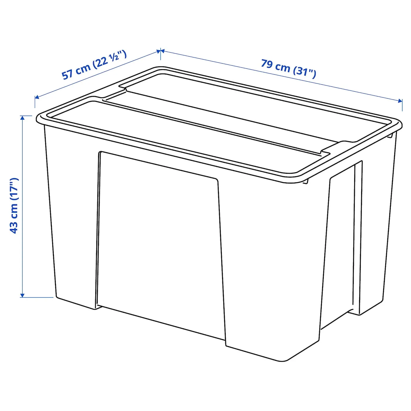 Эта большая коробка идеально подходит для хранения тяжелых и громоздких предметов. Она оснащена колесиками, так что не нужно поднимать тяжести. Прозрачный пластик позволяет сразу видеть содержимое, и находить нужную вещь проще простого.