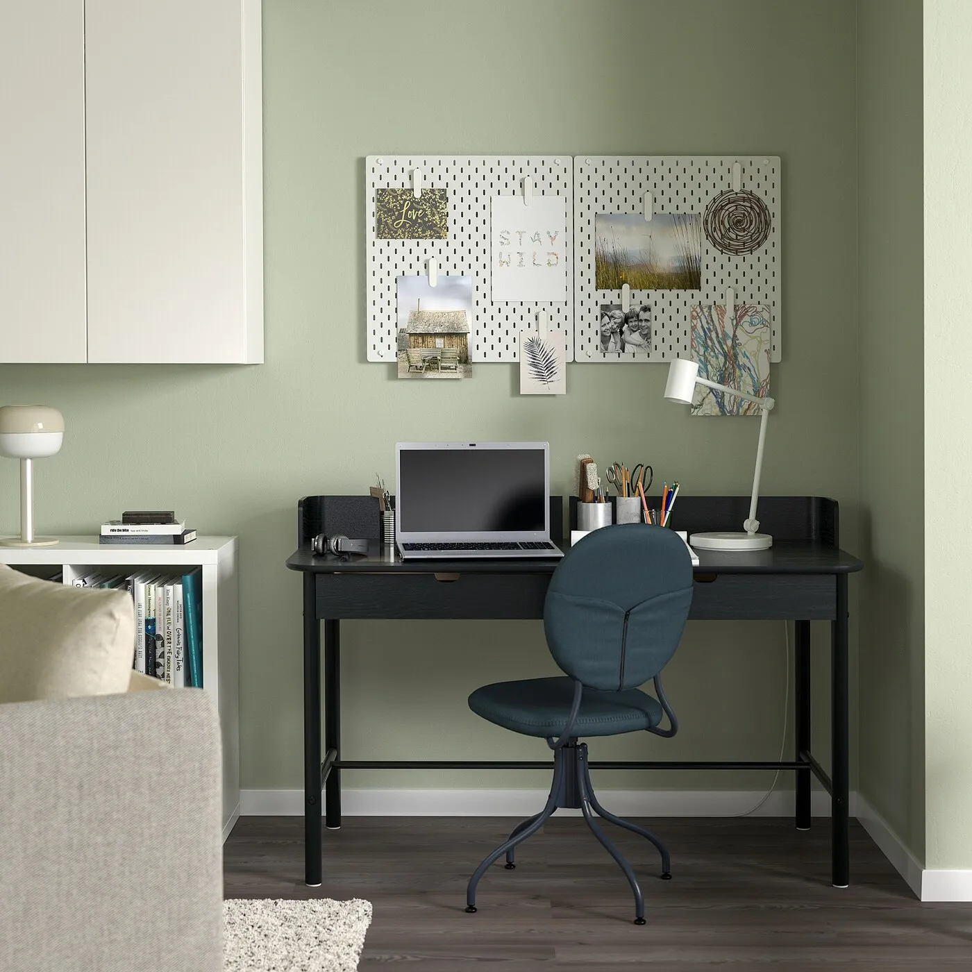 Готовое рабочее место с чёткими линиями и продуманными функциями. Кресло BJÖRKBERGET имеет лёгкий и элегантный вид, а стол RIDSPÖ оснащён ящиком с стеклянной верхушкой для заметок и экспозиции!