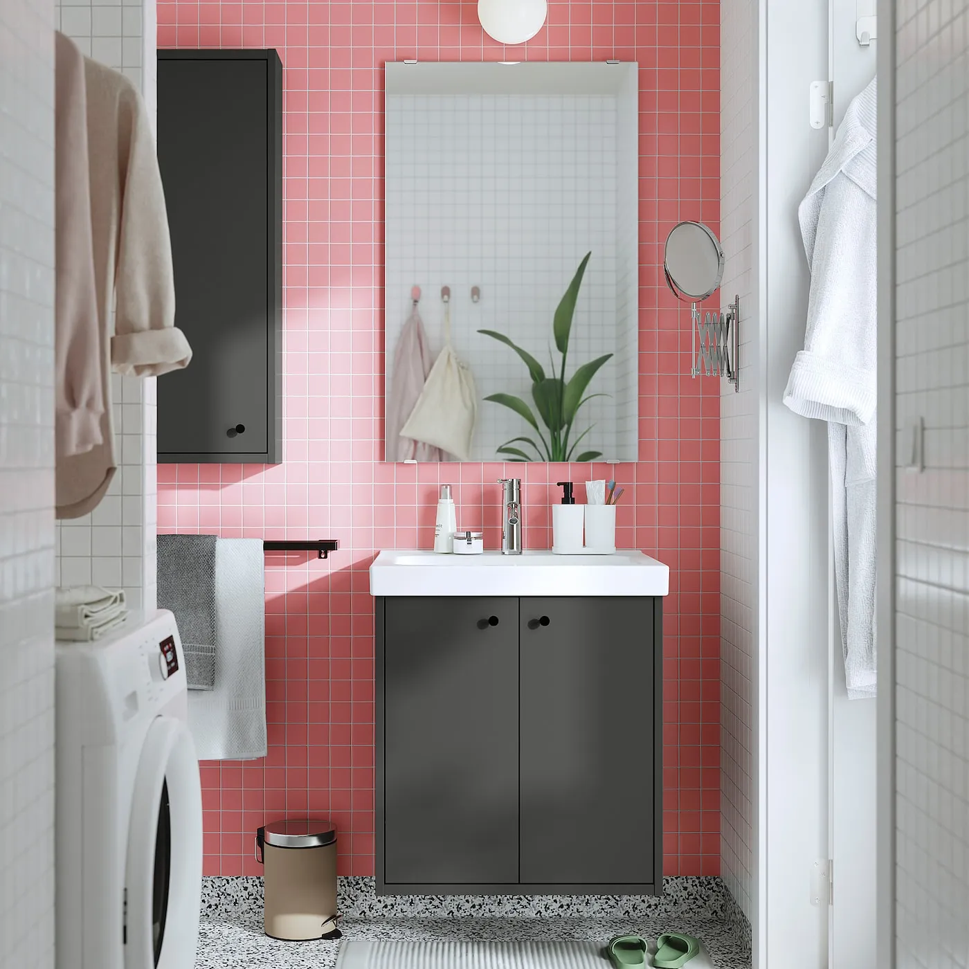 Простой дизайн в сочетании с матовым темно-серым покрытием придает вашей ванной уверенное выражение и уютную атмосферу покоя, которую легко персонализировать, выбрав соответствующие ручки или кнопки.