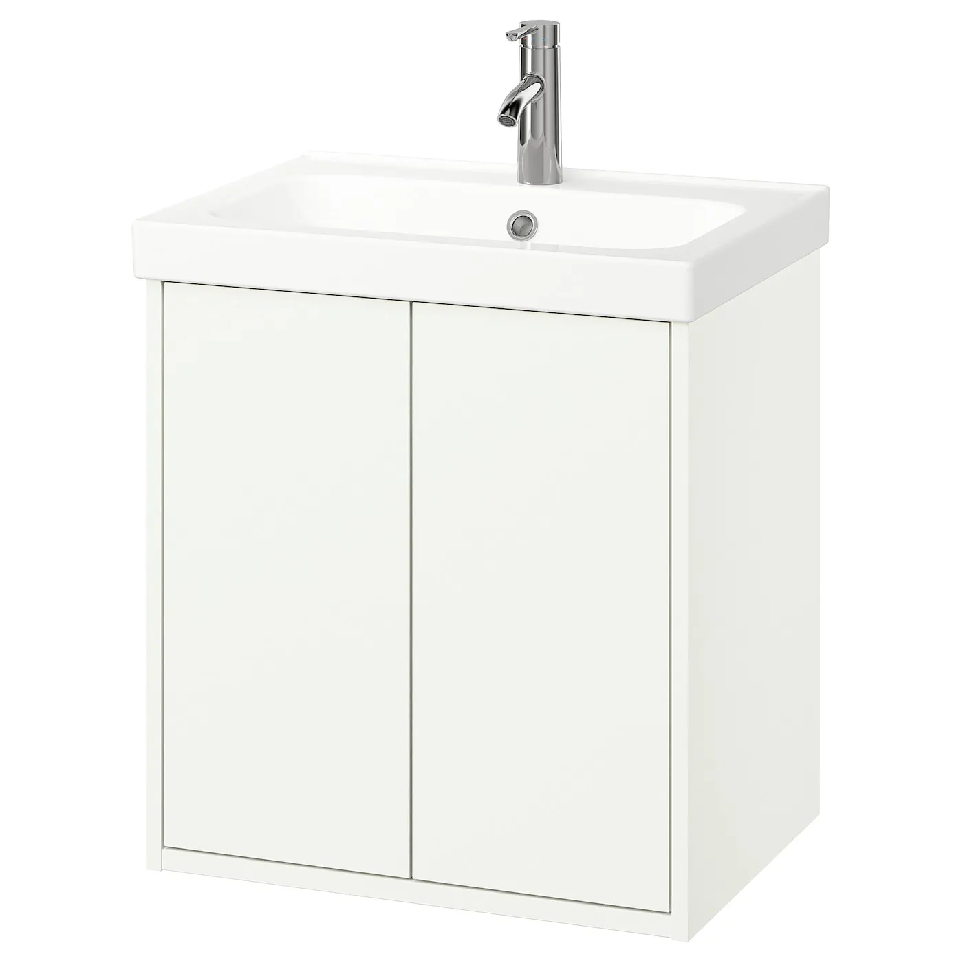Мебель для ванной HAVBÄCK отличается лаконичным, простым дизайном, который легко персонализировать с помощью ручек или кнопок. Этот комплект обеспечивает закрытое хранение и место на раковине для зубных щеток и мыла.