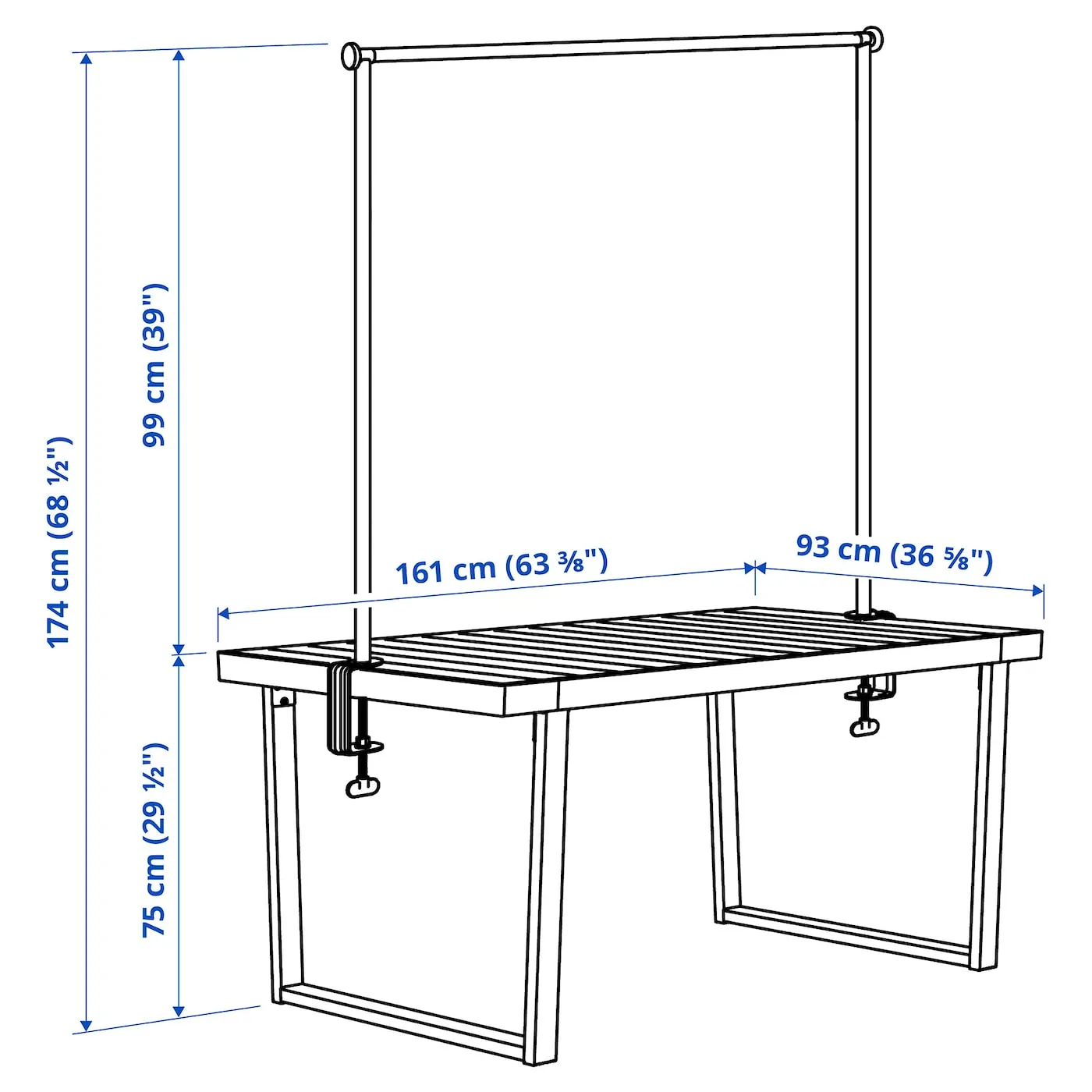 VÄRMANSÖ / HELGEÖ, стол с декоративной штангой для улицы, темно-серый/черный, 161 см