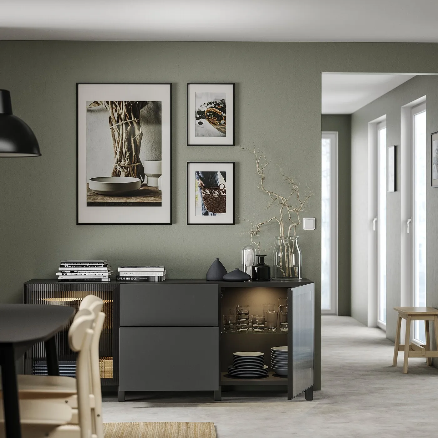 Эта комбинация состоит из нескольких отдельных модулей. Для создания единого вида используйте верхнюю панель BESTÅ, продающуюся отдельно, чтобы скрыть соединение между модулями.