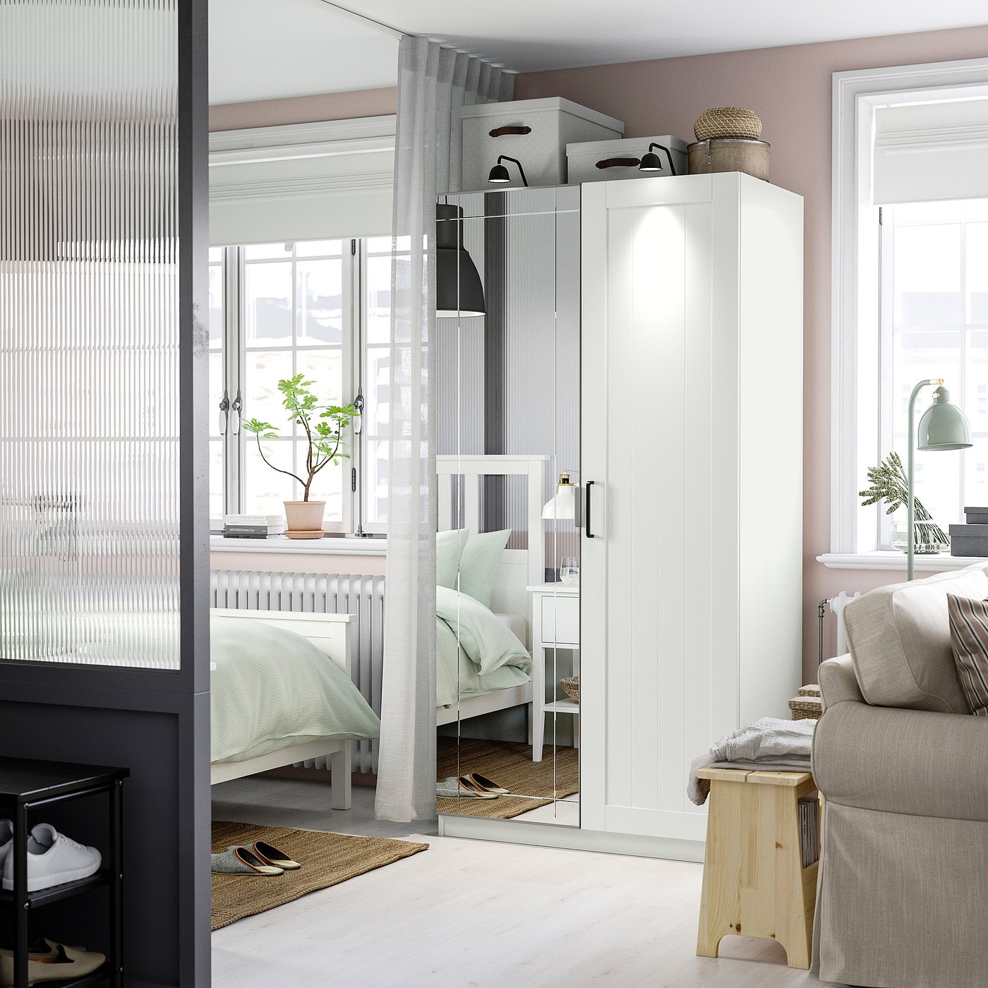 Зеркальная дверь KAMMARTORP имеет тонко фрезерованный узор, который придает ей традиционный вид.
