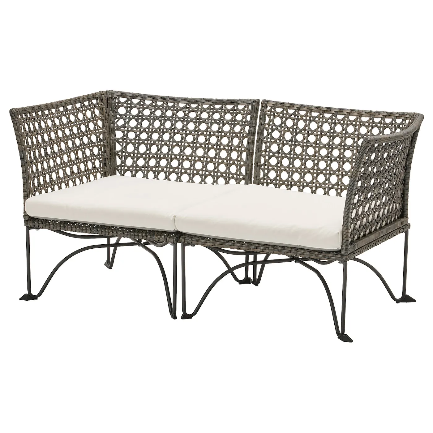 Создайте комфортное место для отдыха на улице с помощью модульного дивана JUTHOLMEN из неприхотливого пластикового ротанга. Добавьте мягкие подушки, устойчивые к выцветанию и снабженные антискользящей поверхностью для вашего удобства.