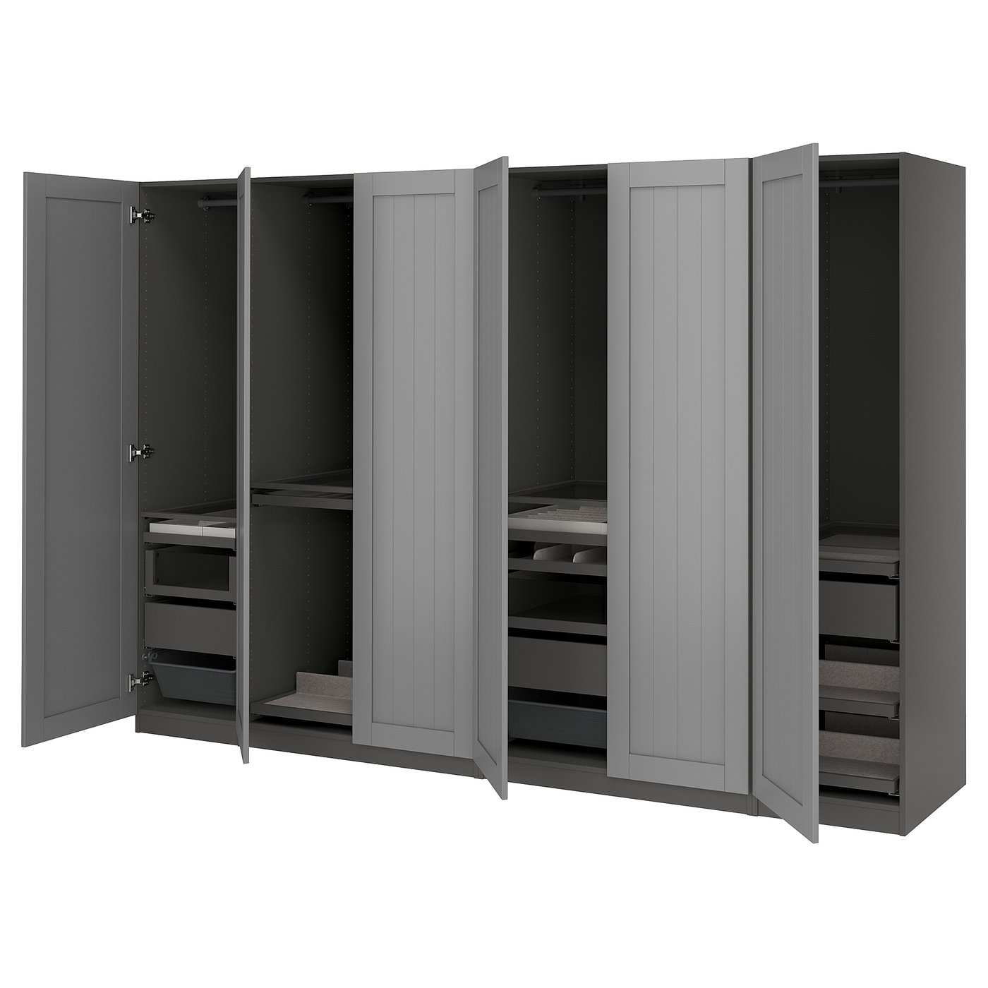 Гардероб с отделением для каждого предмета. Для тех, кто действительно любит организованность, будь то крупные или мелкие вещи, и при этом хочет иметь общий обзор. Вы можете сортировать по стилю или цвету на свое усмотрение.