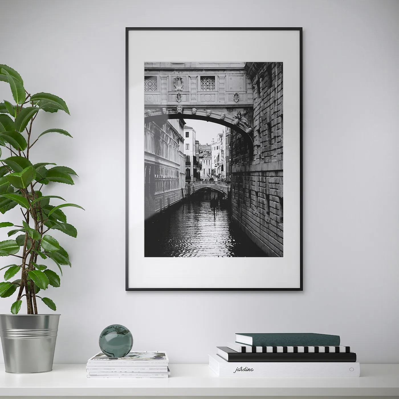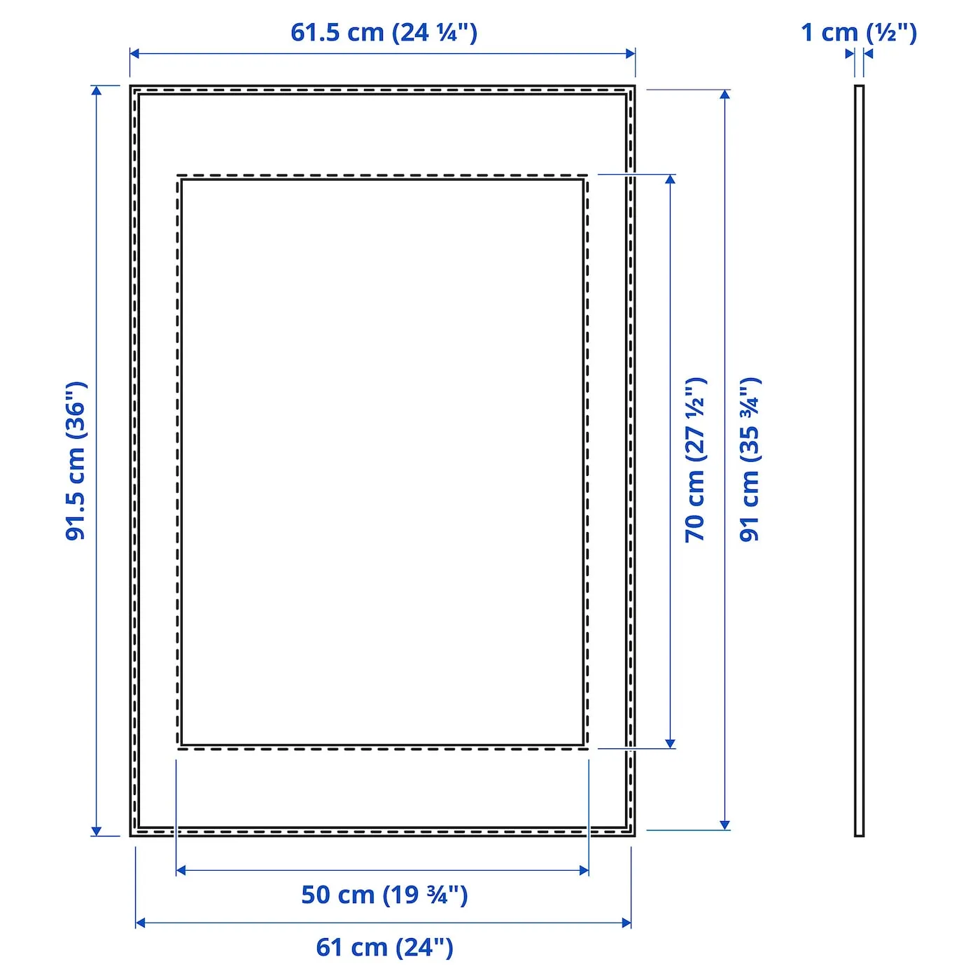 Эта рамка подходит для изображения размером 50x70 см при использовании с паспарту и для изображения размером 61x91 см без паспарту.