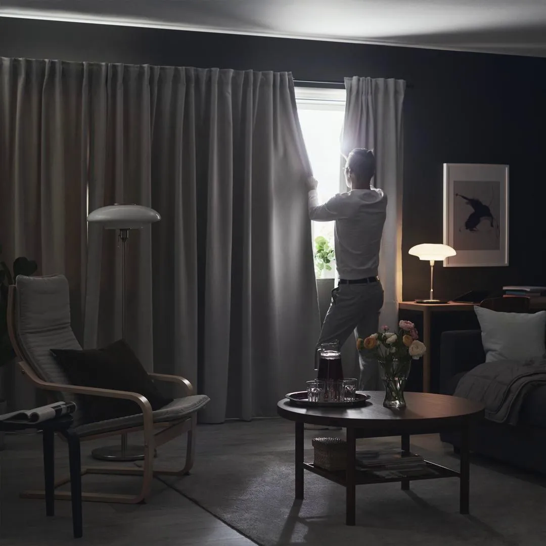 Затемняющая ткань пропускает небольшое количество света и устраняет блики на телевизоре/экранах. Она обеспечивает высокий уровень конфиденциальности, так как снаружи едва различимы фигуры и свет.