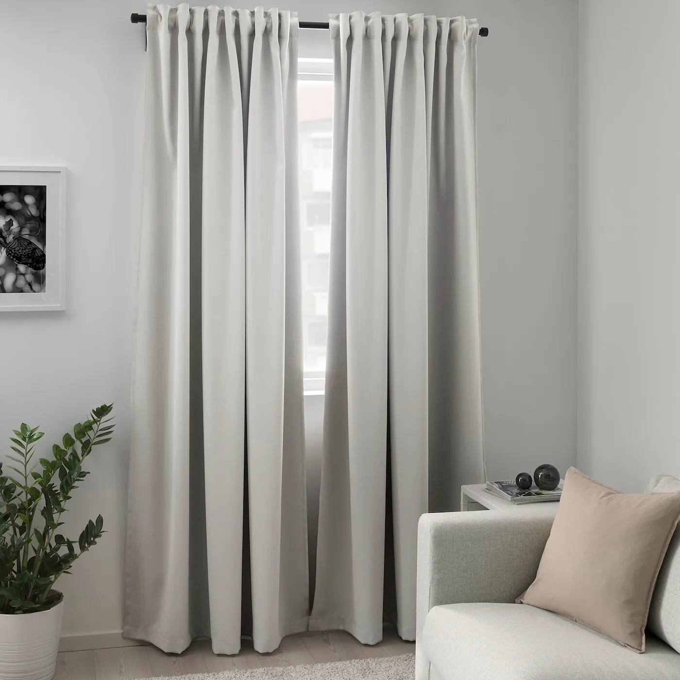 Шторы снижают нагрев от солнца и теплопотери через продуваемые окна. Для наилучшего эффекта установите их от потолка до пола, закрывая окно без зазоров.