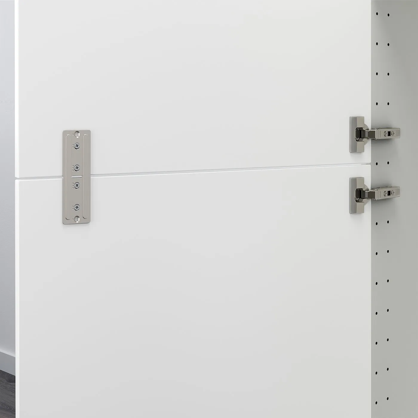 Соединительная фурнитура UTRUSTA используется для объединения двух дверей в одну, чтобы, например, высокий шкаф или встроенный холодильник и морозильник выглядели единообразно.