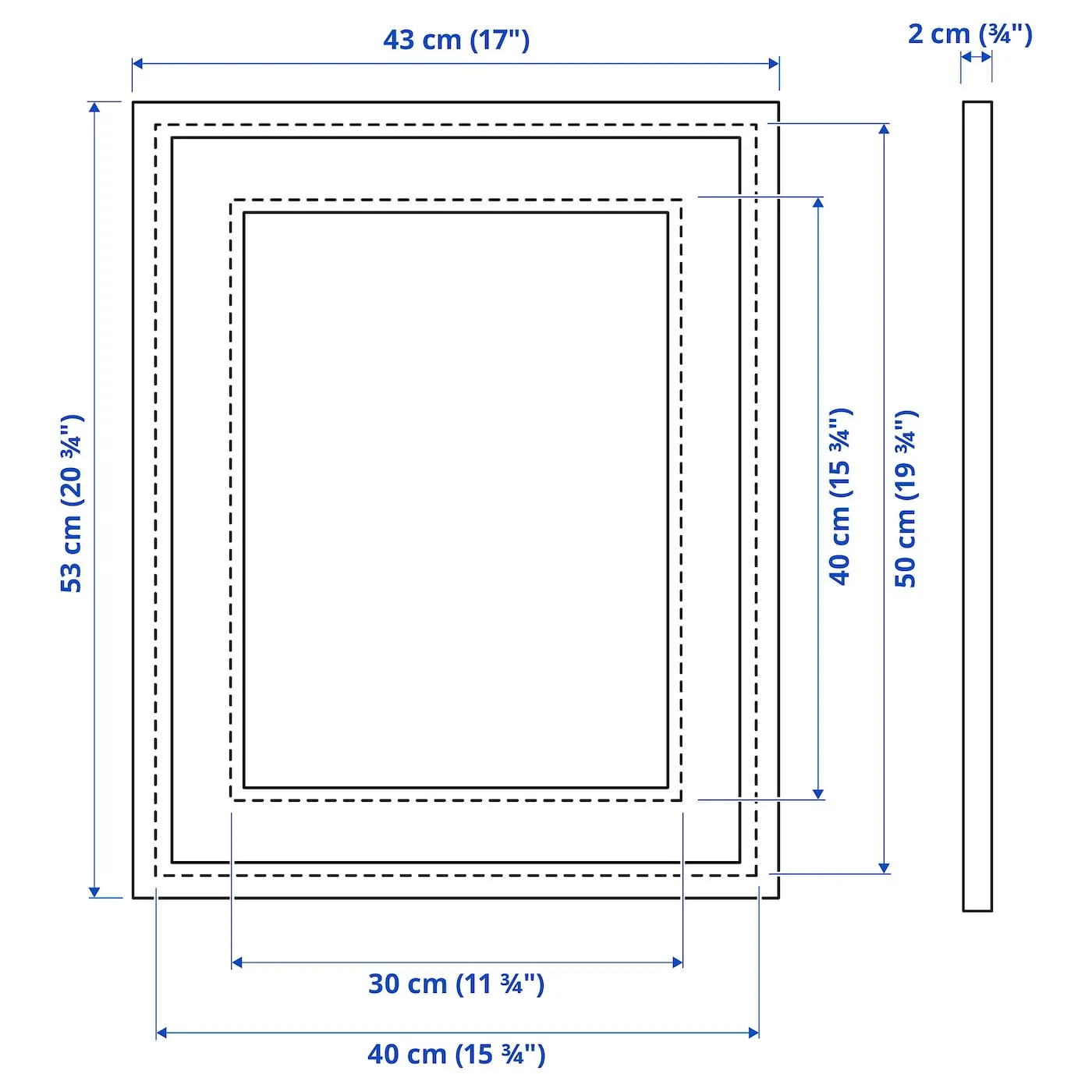 Эта рамка подходит для изображения размером 30x40 см, если используется с картонкой, и для изображения размером 40x50 см, если используется без картонки.