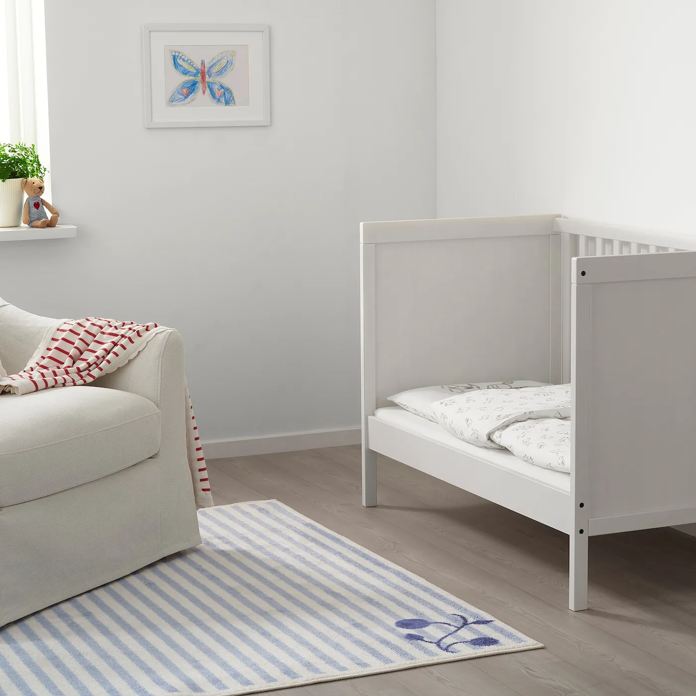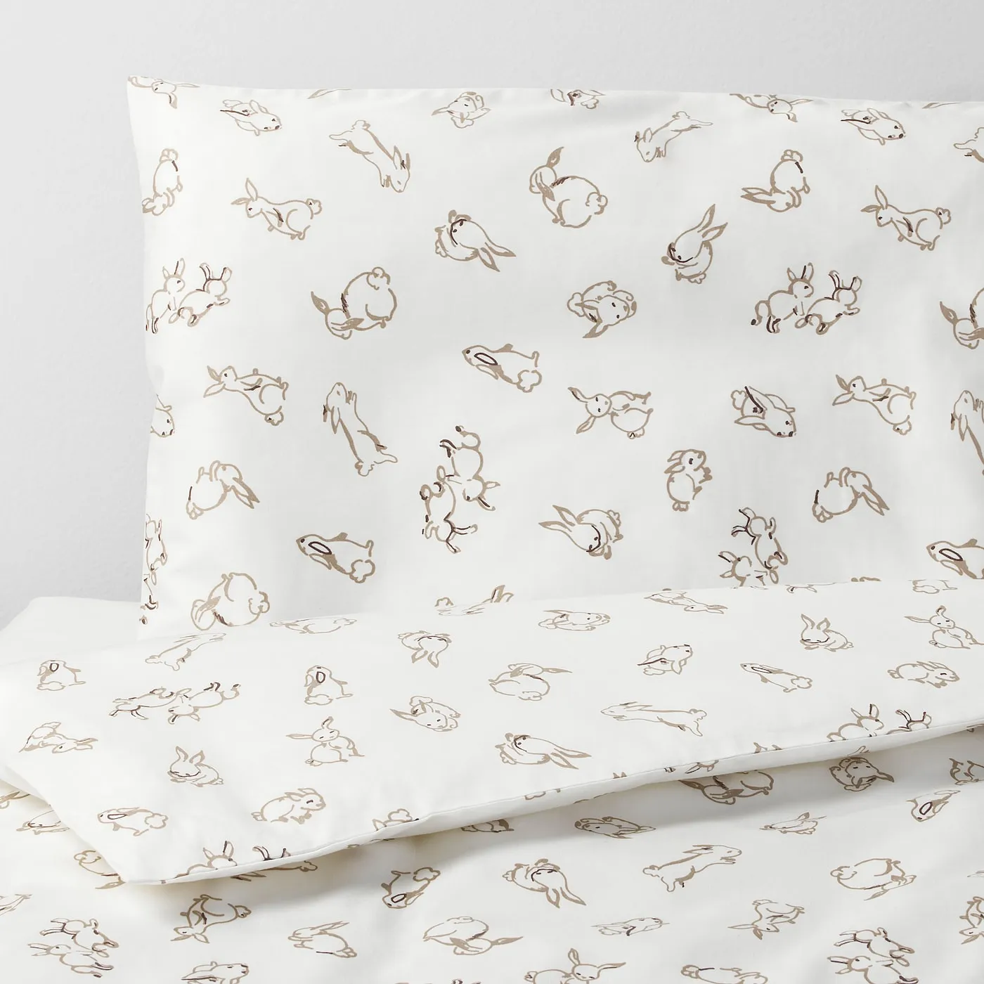 Сатиновое, шелковисто-гладкое постельное белье из экологически чистого хлопка с узором, нанесенным с использованием технологий, требующих меньше воды. Уютно для вашего ребенка ― и полезно для нашей планеты.