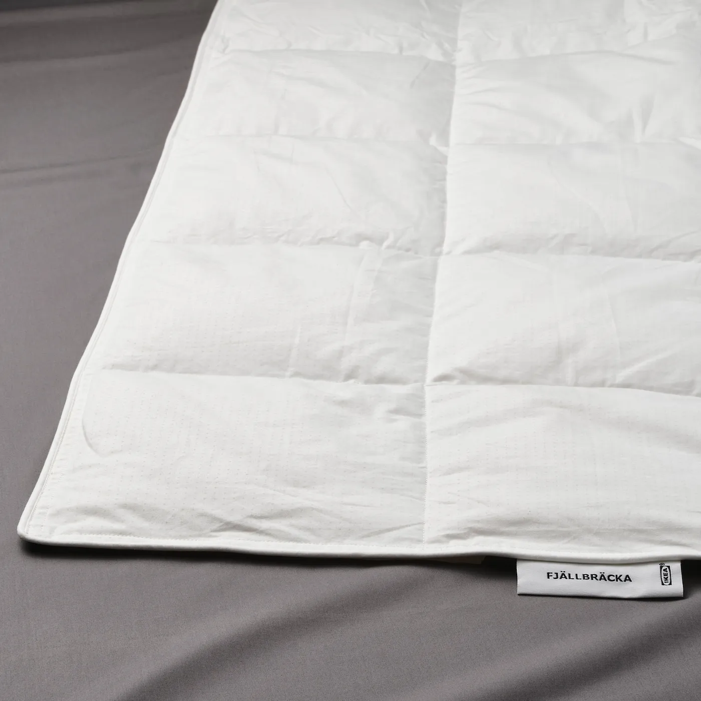 Легкое теплое одеяло с квадратной прострочкой, которая позволяет воздуху и теплу свободно циркулировать. Хлопковая ткань и наполнитель из переработанного пуха и пера обеспечивают комфортный температурный режим в течение всей ночи.