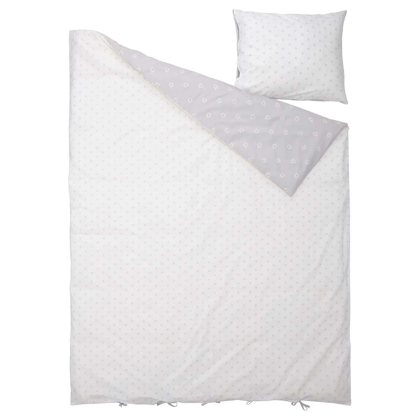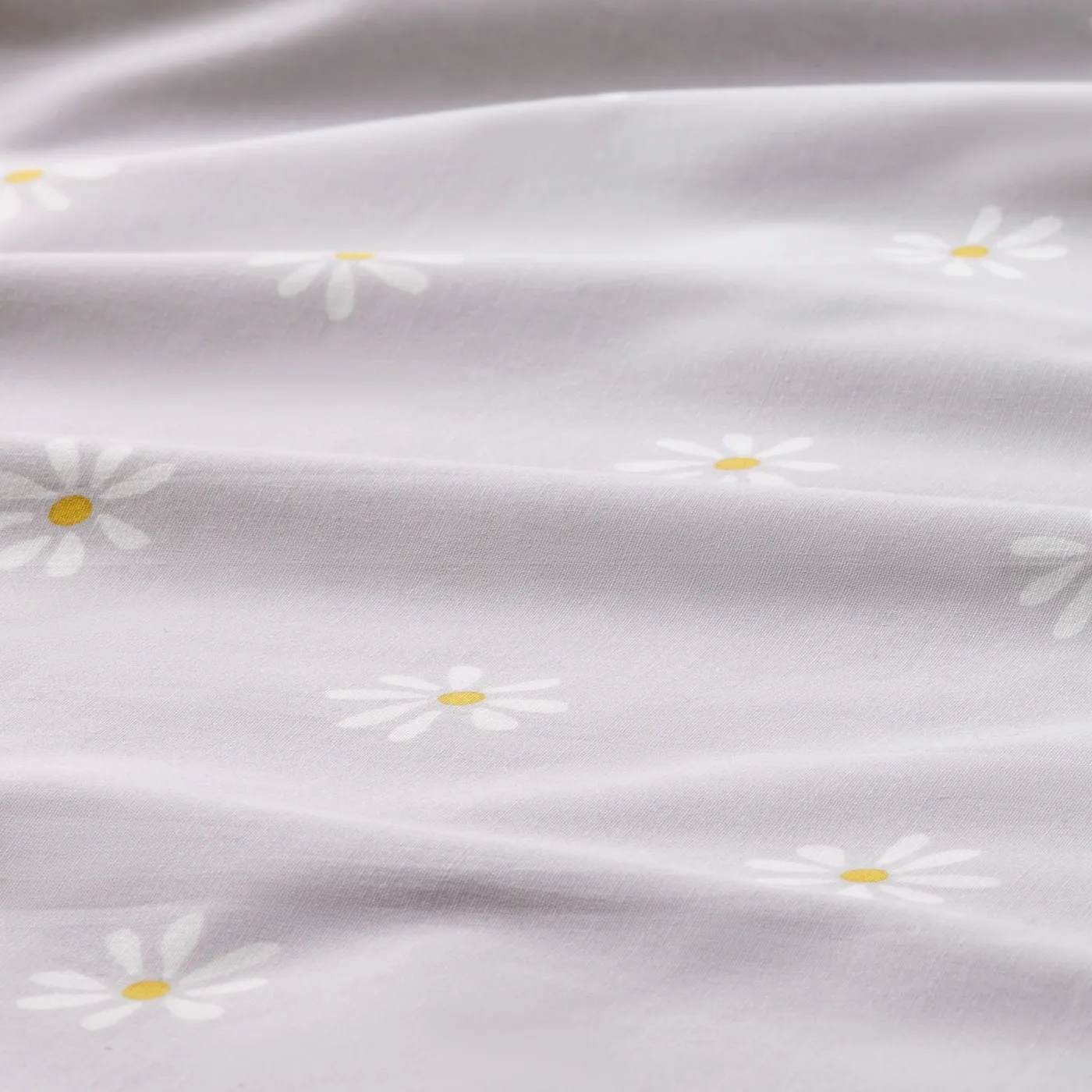 Ромашки. Есть ли что-то более летнее? Этот серо-белый пододеяльник украшен ромашками с обеих сторон и дарит замечательное ощущение прохлады на коже благодаря искусно сплетенной ткани из хлопкового перкаля.