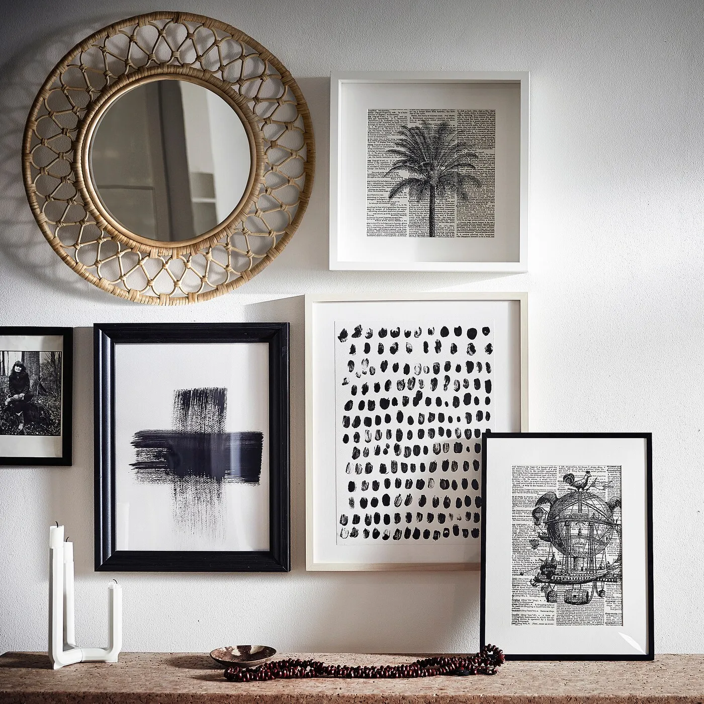 Зеркало столь же функционально, сколь и декоративно, оживляет пустую стену.