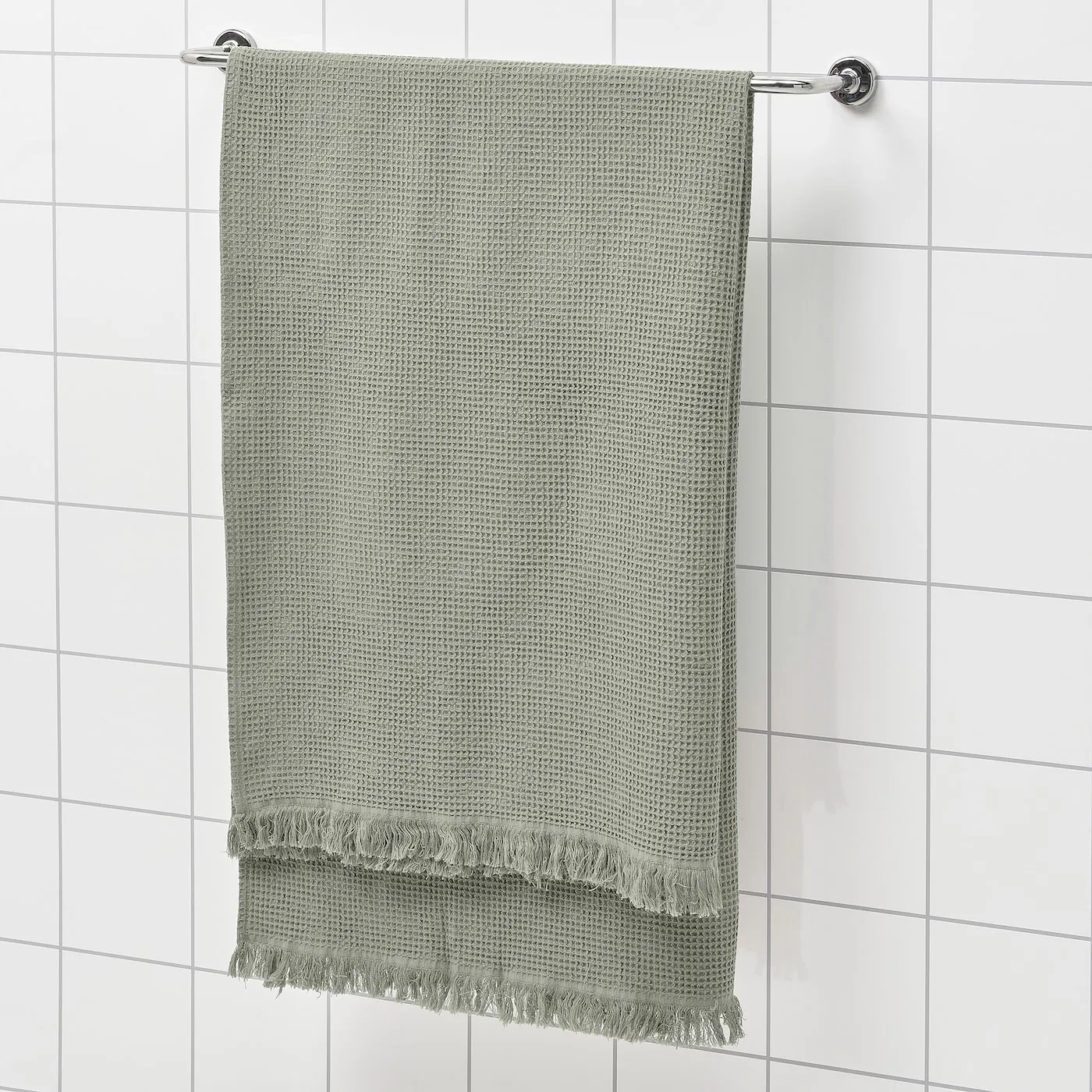 Светло-зеленый оттенок полотенца VALLASÅN создан из сельскохозяйственных остатков пальмы сереноа. Используя природные краски, вы можете укутаться в это мягкое полотенце в естественном оттенке.