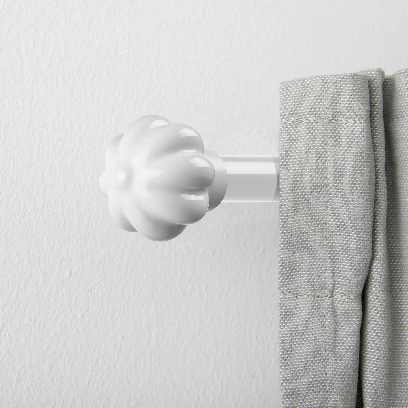 Независимо от того, новые у вас шторы или уже давно висят, обновить их стиль поможет замена наконечников на карнизе. Например, на эти белые керамические, напоминающие бутоны цветов.