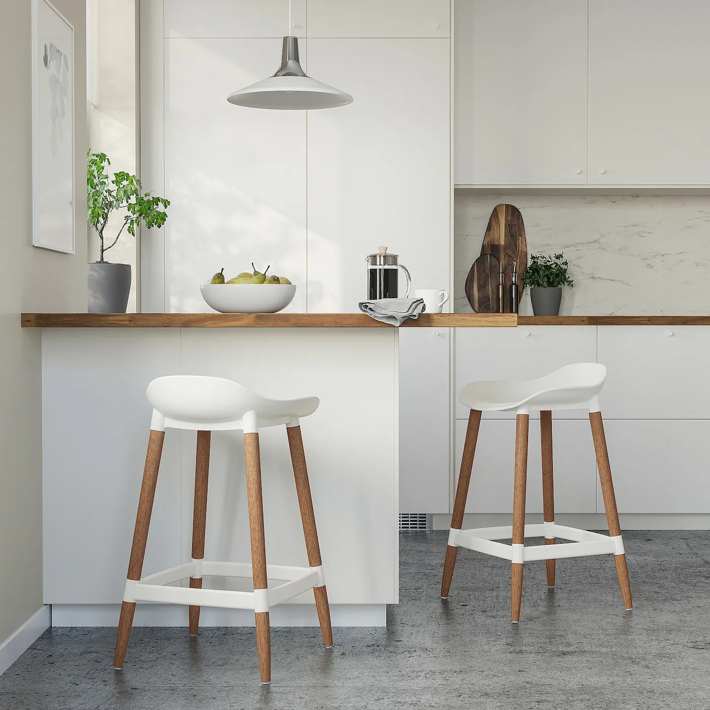 Этот барный стул подходит для кухонных столешниц и островков.