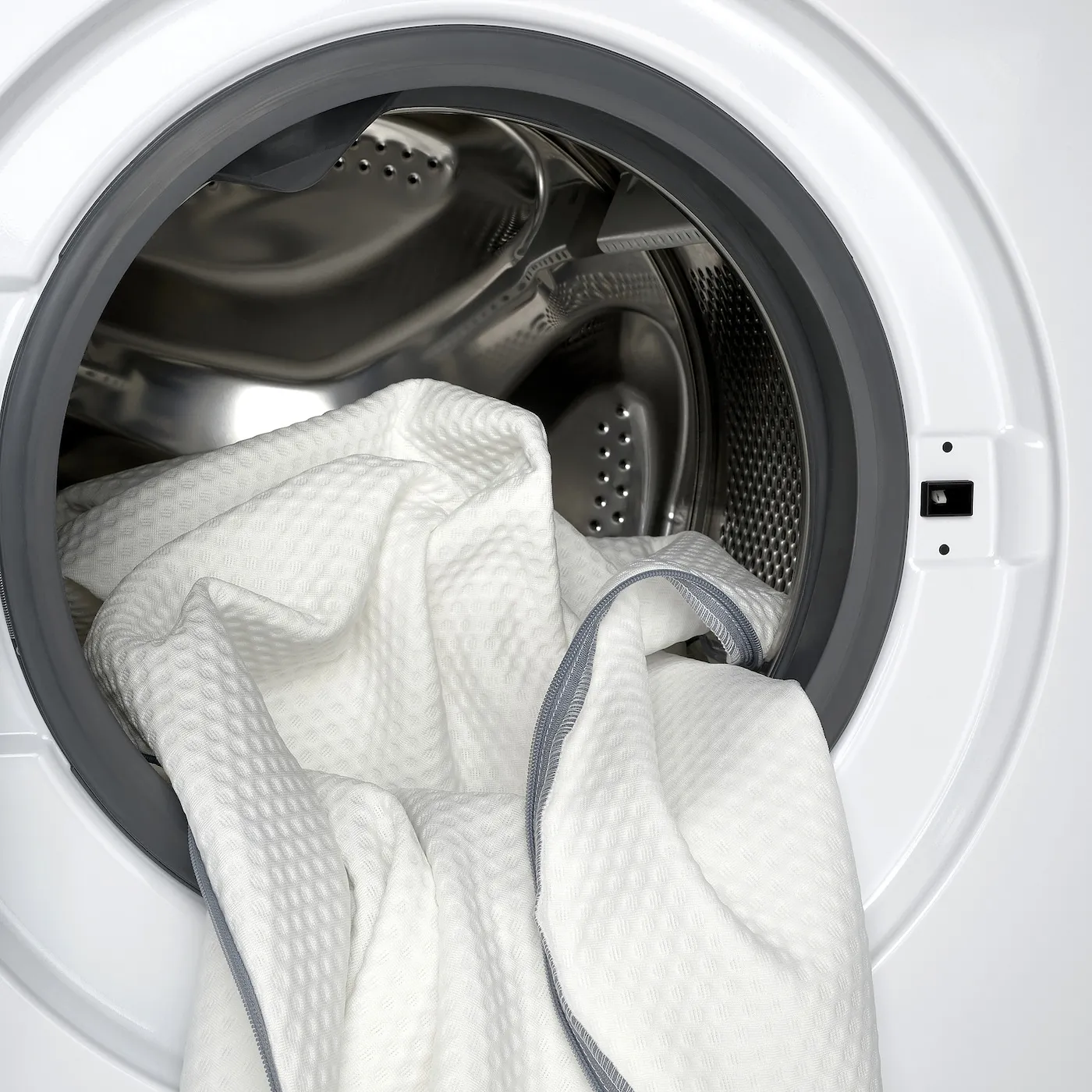 После стирки убедитесь, что синяя сторона пены памяти выровнена с той частью чехла, где находится синяя молния.
