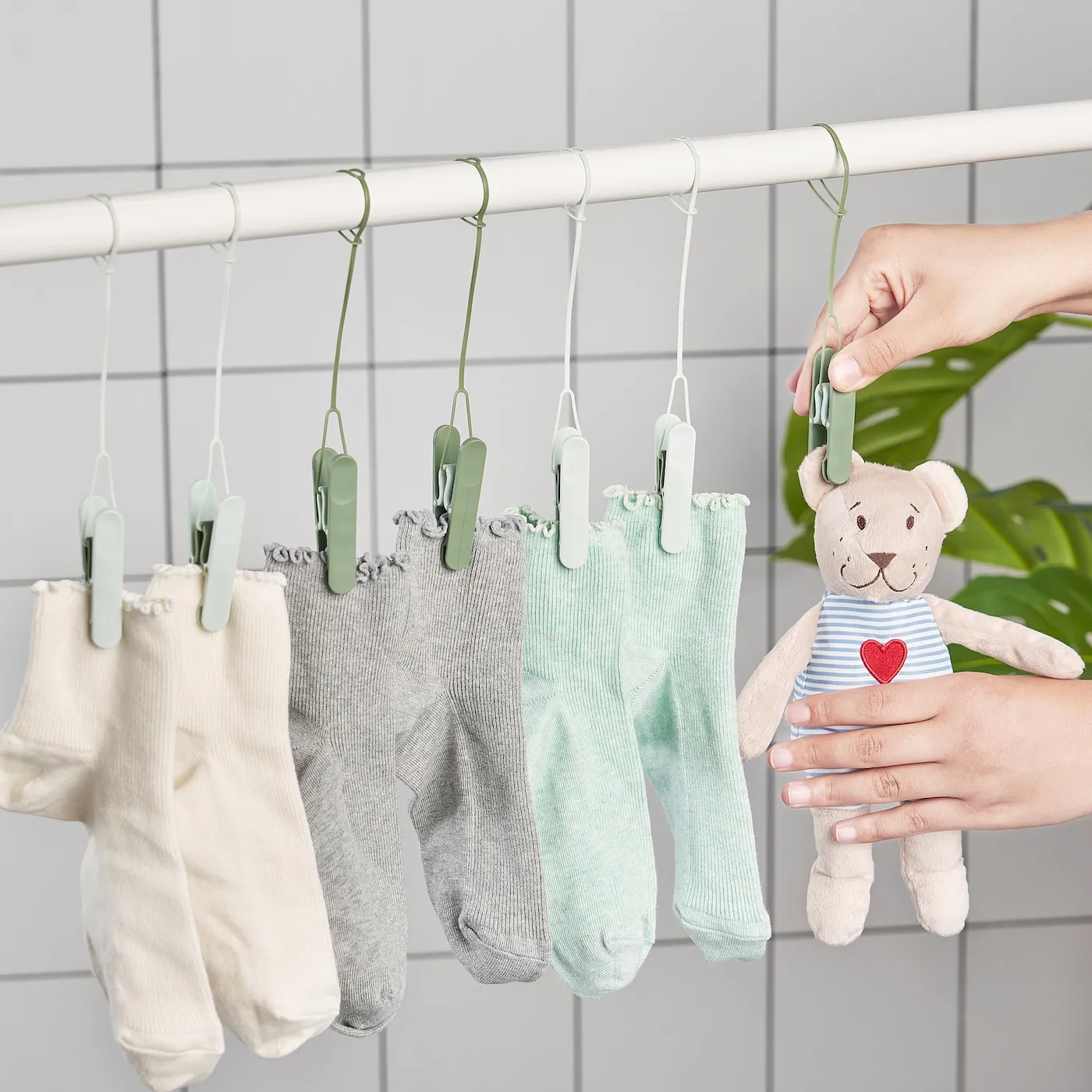 Эта прищепка предлагает гибкое решение: вы можете выбрать, как вешать одежду — например, на сушилку для полотенец с помощью петель или прямо на прищепки, прикрепленные к бельевой веревке.