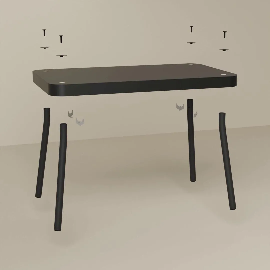 В комплект входит: 2 столешницы (55x55 см/70x40 см) и 8 ножек (высота 38 см/45 см).