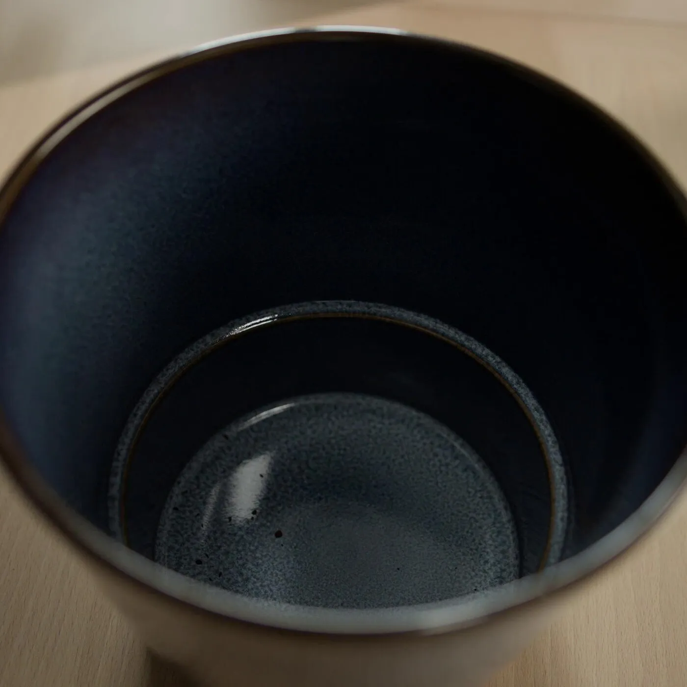 Это морское-синее глазурованное кашпо с золотисто-коричневыми деталями подчёркивает красоту ваших растений. Его вечная привлекательность и стильная классическая форма идеально подойдут для создания зелёного оазиса у вас дома.