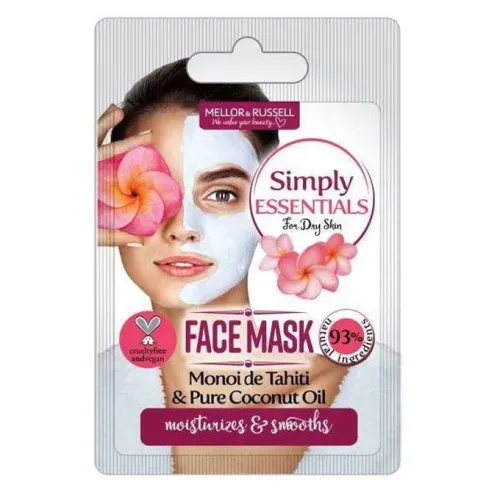 SIMPLY ESSENTIALS FOR DRY SKIN FACE MASK WITH MONOI DE TAHITI AND PURE COCONUT OIL MOISTURIZES Smooths - высококачественная питательная и успокаивающая маска для лица с моной и аргановым маслом, которая подходит для сухой кожи и обеспечивает мгновенный освежающий и расслабляющий уход.